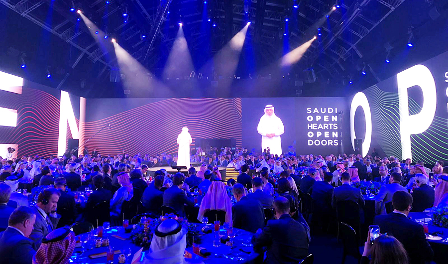 • The evening culminated in a performance that used the dining room’s four massive screens to showcase the extent of Saudi Arabia’s investment in the tourism sector.